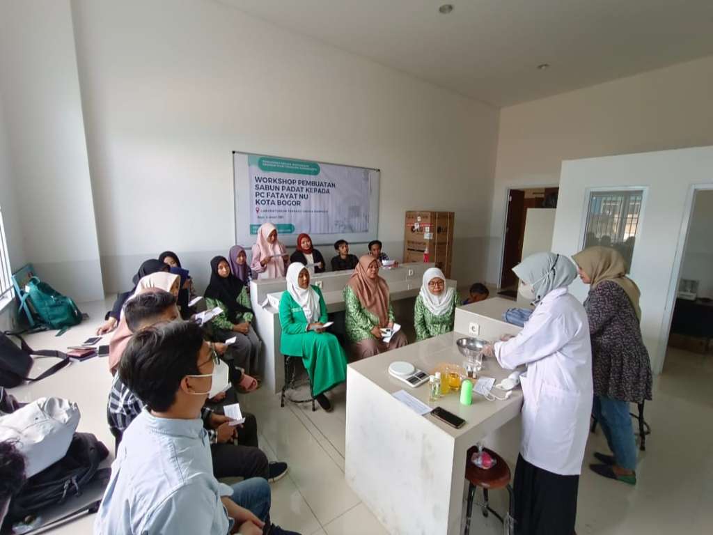 Bogor-Prodi Teknologi Agroindustri Universitas Nahdlatul Ulama Indonesia (UNUSIA) bermitra dengan PC Fatayat NU Kota Bogor menyelenggarakan pelatihan pembuatan sabun sebagai salah satu kegiatan Pengabdian kepada Masyarakat (PkM). Pelatihan pembuatan sabun dipilih karena sabun merupakan salah satu kebutuhan rumah tangga yang selalu digunakan.